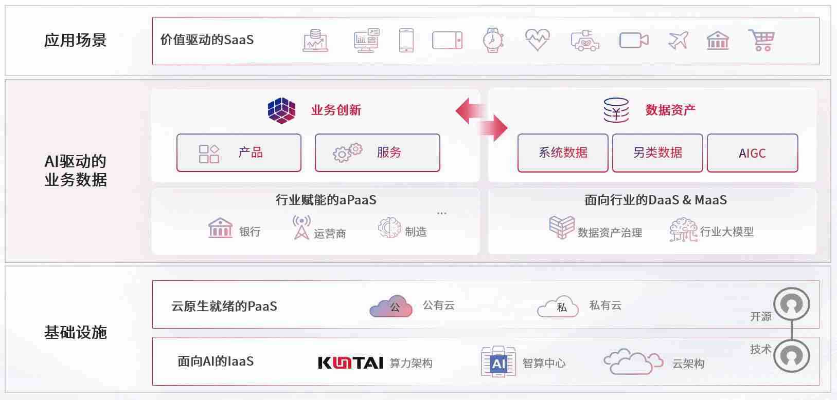 数字时代,,围绕企业数字化转型的关键要素,,,PG国际数码开创性的提出数云融合战略和技术体系框架,,着力在云原生、、、数字原生、、、AI原生和信创产业上架构产品和服务能力,,,,为处在不同数字化转型阶段的快消零售、、汽车、、、金融、、、医疗、、、、政企、、、、教育、、运营商等行业客户提供泛在的敏捷IT能力和融合的数据驱动能力,,构建跨界融合创新的数字业务场景和新业务模式,,,助力企业级客户建立面向未来的核心能力和竞争优势,,,全面推动社会的数字化、、、、智能化转型升级。。